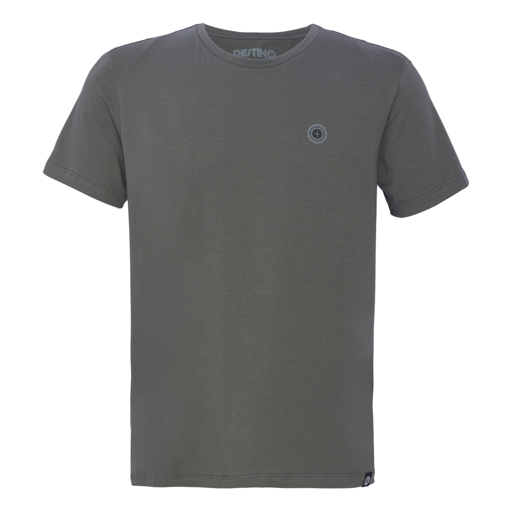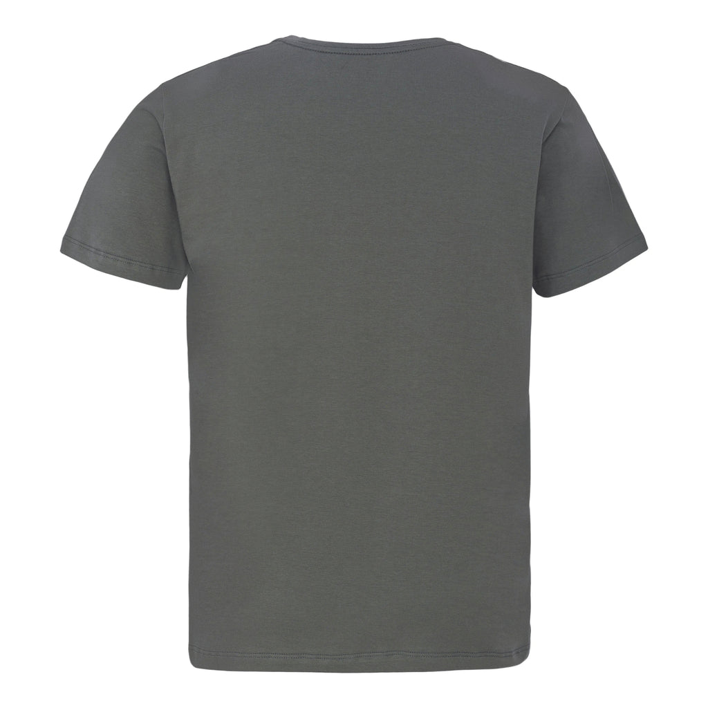 Camiseta em malha 93% algodão e 7% elastano, com costuras reforçadas ombro a ombro com viés.